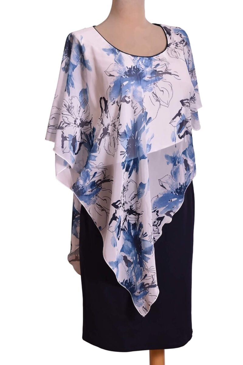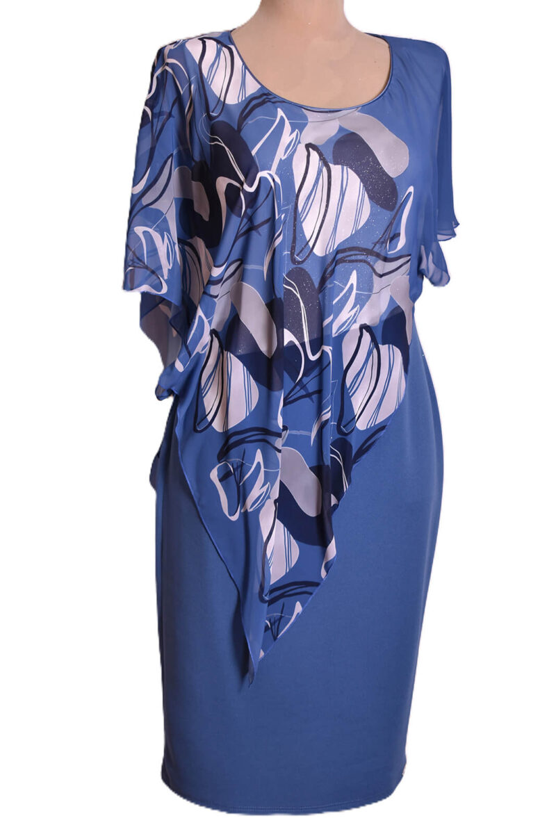 Alkalmi ruha muszlin felsőrésszel. A ruha maga szűkebb fazonú, ujjatlan, oldalán egy rejtett cipzár segíti a könnyű le- és felvételt. A felső, finom esésű muszlin rész pedig igazán légiessé teszi a darabot és elfedi azokat a részeket, amik miatt időnként bizonytalannak érezzük magunkat a szűkebb fazonokban. Jó választás lehet örömanyák számára, és olyan alkalmakra, ahol fontos az elegáns megjelenés.